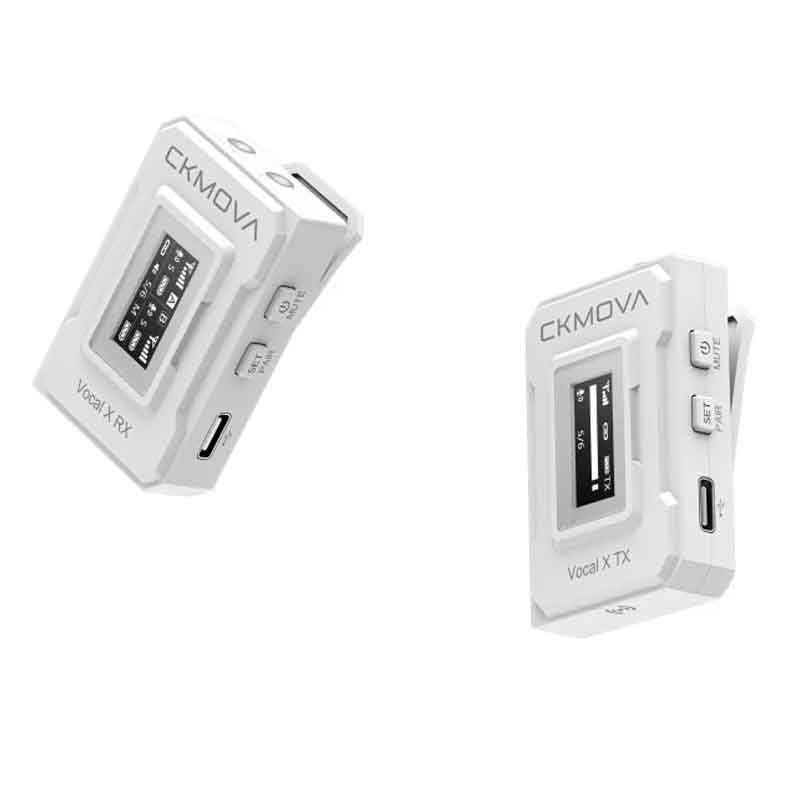 CKMOVA Vocal X V1 (White) – ультракомпактная цифровая беспроводная микрофонная система. Она является простым решением для блоггеров и проведения интервью, прямой трансляции с одним человеком в сочетании с зеркальной камерой, смартфоном или компьютером. Система имеет ряд мощных функций, включая 3,5-мм выход на наушники, режим вывода моно и стерео (переключаемый), режим микрофонного и линейного входа (переключаемый), и OLED-дисплей на передатчике и приемнике. Компактный и легкий передатчик-клипс для крепления на одежду имеет встроенный всенаправленный микрофон, также есть возможность подключить внешний микрофон AC-VM1 для различных сценариев записи. CKMOVA Vocal X способна обеспечить стабильную передачу сигнала на частоте 2,4 ГГц и высококачественного звука.
