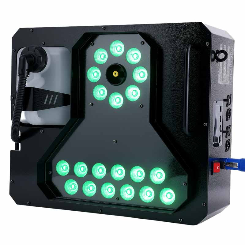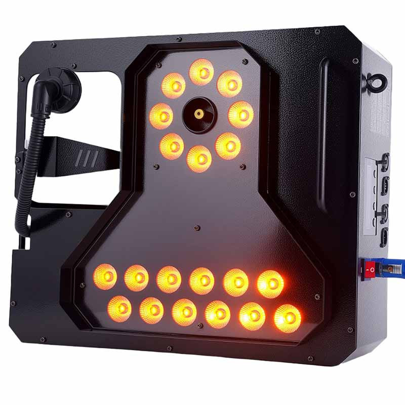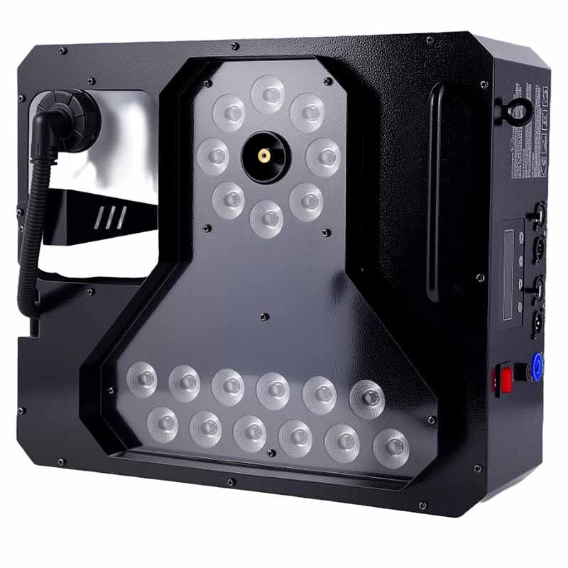 Free Color SM029 – дым машина, сочетающая мощный вертикальный выпуск дыма с LED-подсветкой. Мощность 3000 Вт обеспечивает выброс на расстояние до 10 м, а 20 RGB светодиодов создают яркие цветовые эффекты. Время нагрева – 5 минут, емкость бака 2,5 л позволяет работать длительно без дозаправки. Подходит для клубов, концертов и шоу-программ.
