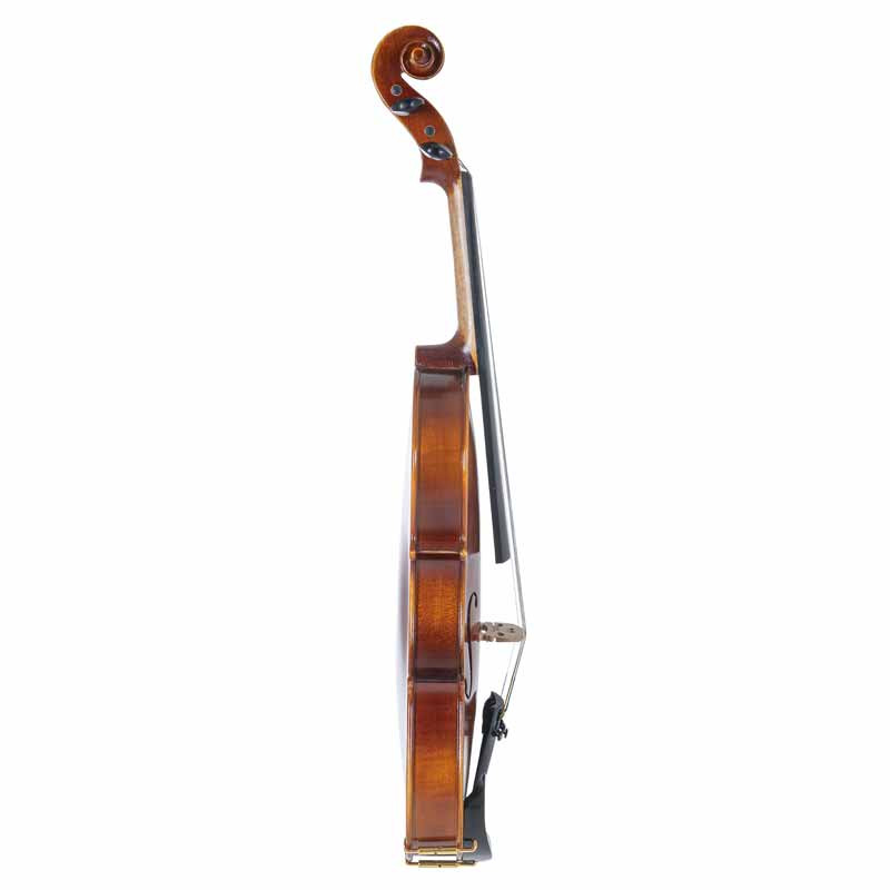 Колышки, накладка на гриф, подбородок и струнодержатель изготовлены из черного дерева (ebony). Это очень ценная древесина, известная своей глубокой темной (почти черного цвета) текстурой. Темный цвет черного дерева придает скрипке элегантный и изящный вид. Древесина не реагирует на изменение влажности или температуры – это важно для таких компонентов, как колы, которые должны обеспечивать точную настройку струн. Качественный струнодержатель от немецкого бренда Wittner оснащен микроподстройкой для легкой настройки. Благодаря своей гладкой поверхности черное дерево обеспечивает комфортную и плавную игру. Гриф из этого материала имеет приятную текстуру, способствующую легкому скольжению пальцев музыканта во время игры.