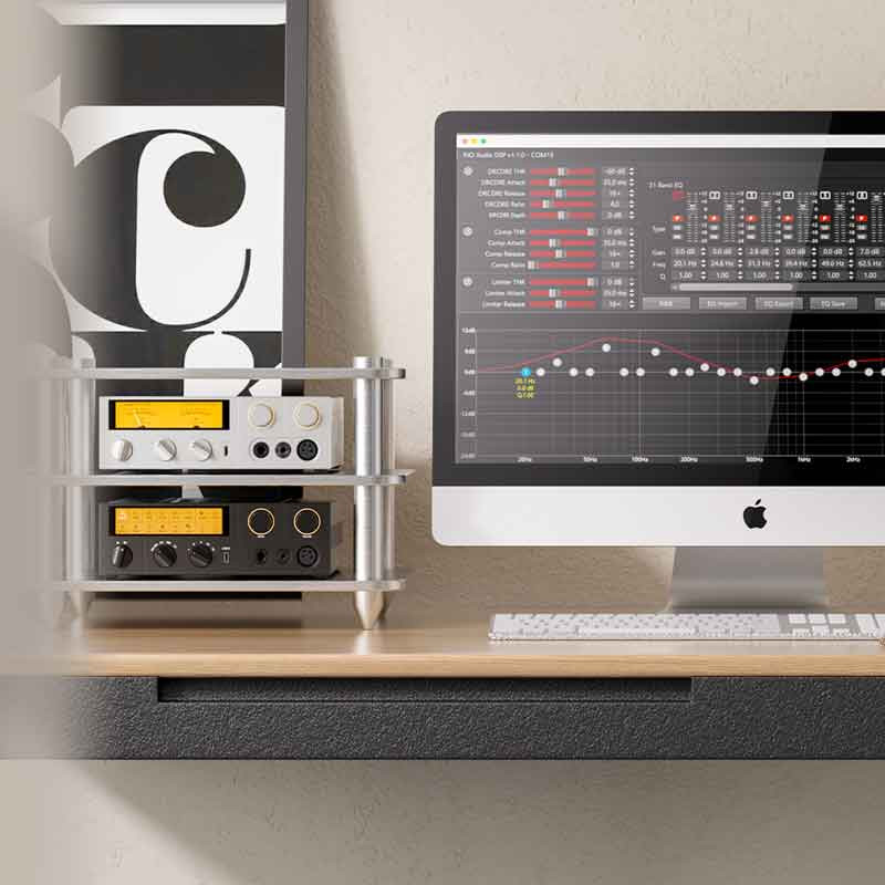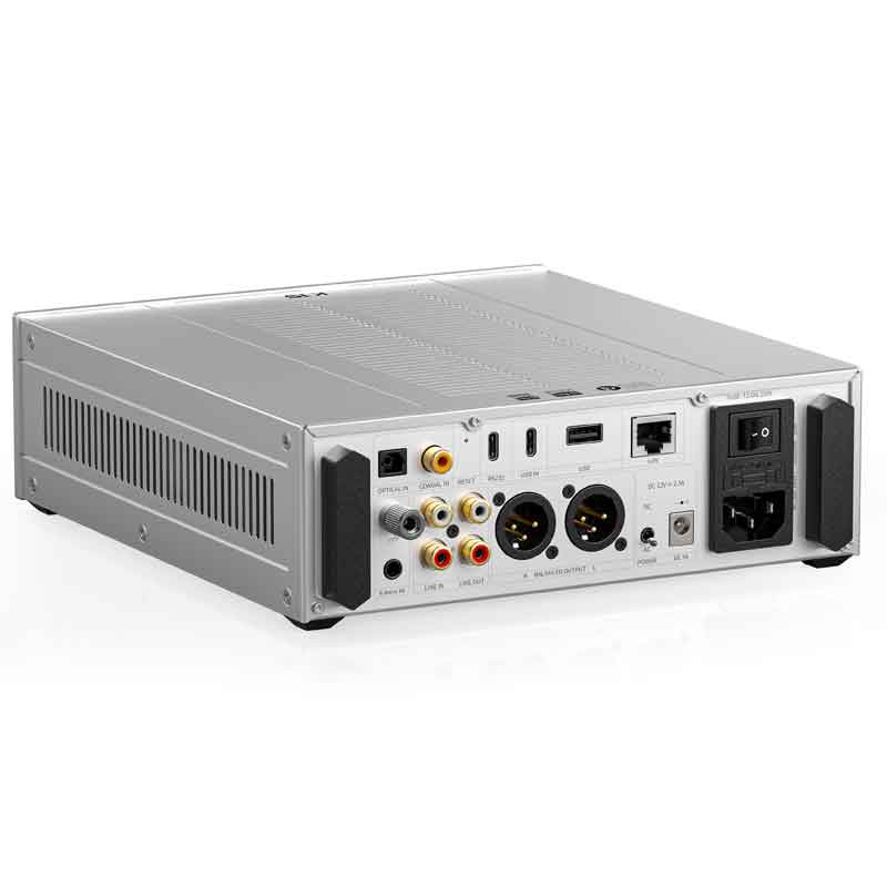 Fiio K17 (Silver) – стационарный ЦАП с усилителем для наушников. Fiio K17 оснащен DSP-чипом M21586Q, который способен выполнять 64-разрядные вычисления с плавающей запятой двойной точности и работает на высокой тактовой частоте 360 МГц. Этот чип дополнен высокопроизводительным АЦП ES9821Q, а также специально разработанным кварцевым фемтосекундным генератором со сверхнизким фазовым шумом. Эти три компонента позволяют пользователю во всех режимах использовать высокоточный 31-полосный эквалайзер PEQ без потерь. PEQ предназначена для обеспечения высокой четкости аудиосигнала даже в самых сложных условиях. после обработки. Микросхема обеспечивает надежную защиту выходного сигнала, гарантируя полную защиту наушников и другого подключенного аудиооборудования.