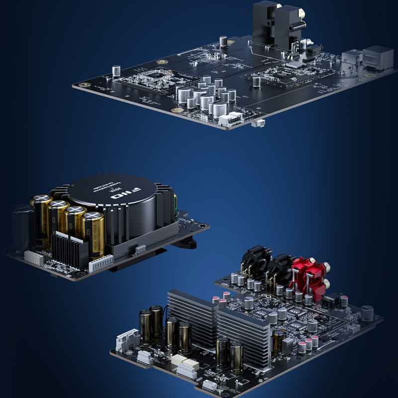 Различные секции внутреннего блока питания, цифровые и аналоговые секции расположены на физически разделенных печатных платах, что позволяет избежать помех между ними. Это обеспечивает точность и целостность обработки сигнала для получения более чистого аудиовыхода.