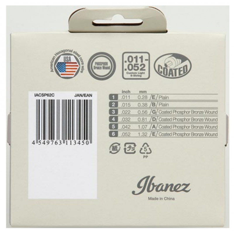 Технические характеристики IBANEZ IACSP62C ACOUSTIC GUITAR STRING 11-52:
