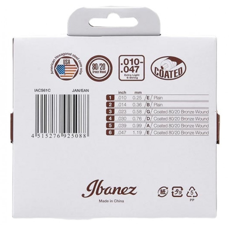 Ibanez IACSP61C Acoustic Guitar String 10-47 – 6-струнный комплект струн для акустической гитары, Extra Light, 80/20 бронза, калибр: .010, .014, .023, .030, .039, .047.