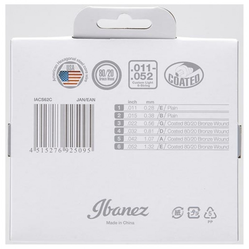 Струны Ibanez IACS62C – это гармония мягкости исполнения и выразительного тембра. Калибр: .011, .015, .022, .032, .042, .052.