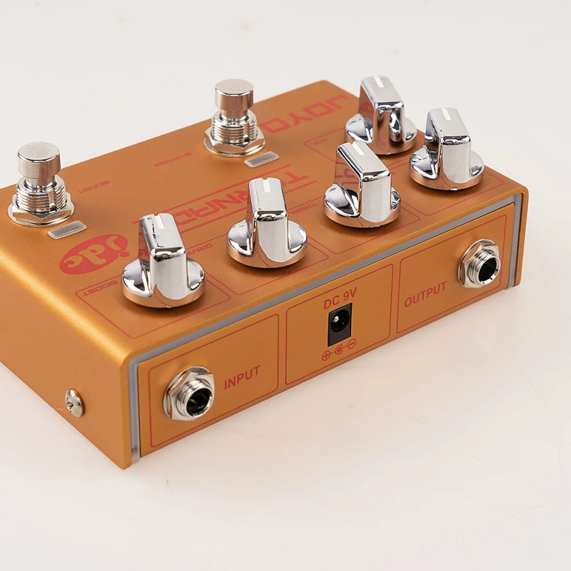 Канал Boost имеет независимый регулятор уровня усиления. На чистом звуке включенный переключатель Boost добавляет звуковые просторные обертоны, красиво подчеркивающие бас и высокие частоты. При включении кнопки Overdrive педаль обеспечивает живой и зернистый перегрузочный звук.