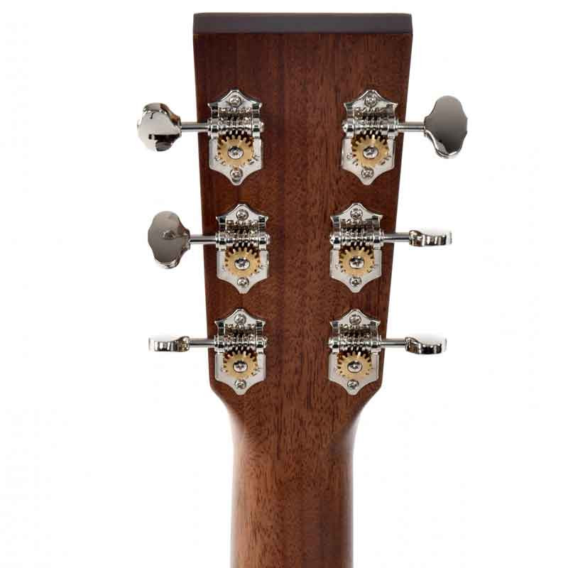 Электроника - LR Baggs EAS-VTC. Это уже серьезный уровень: прозрачное звучание, подробное воспроизведение нюансов, минимальная инвазивность в конструкции инструмента. Все настроено на сохранение натурального тембра при подключении. Механика Grover с открытыми шестернями и винтажными Butterbean-ручками – идеальное сочетание точности и стиля.