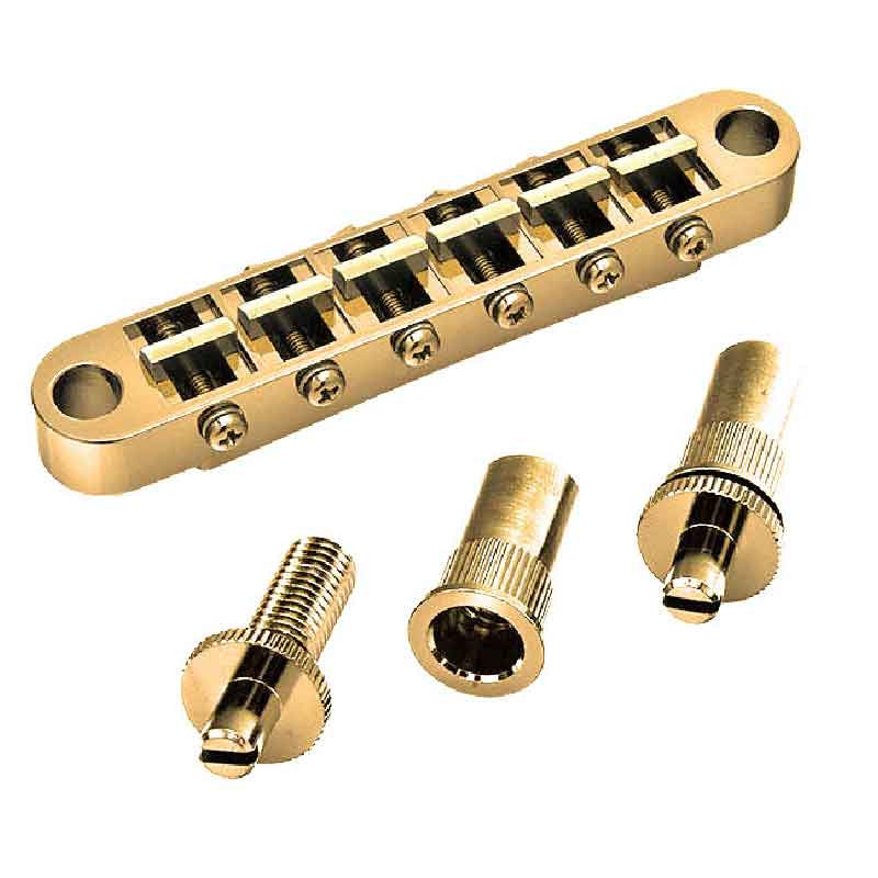 GOTOH AS103B-T (GG) – бридж для электрогитары, типа Tuneomatic. Tuneomatic (Tune-o-matic) – это тип гитарного бриджа, впервые появившегося на гитарах Gibson в 1950-х годах. Он позволяет очень точно настраивать интонацию каждой струны, потому что каждое сидельце можно двигать вперед или назад. Чаще такой бридж можно увидеть на Gibson Les Paul, SG и подобных моделях.