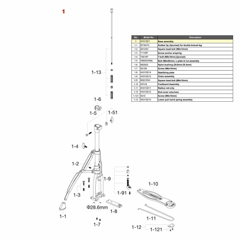 Tama HH315D1 – крепление кардана к педали хай-хета.