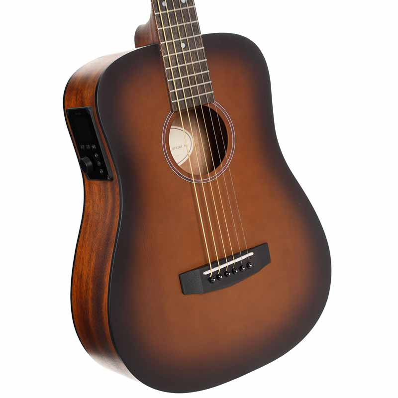 Cort Earth GO (Open Pore Brown Burst) – электроакустическая гитара, уменьшенного корпуса 3/4 мини дредноут, сочетающая богатое акустическое звучание со смарт-функциями! Корпус с цельной верхней декой из ситхинской ели и оснащен инновационной системой HyVibe H2, которая открывает доступ к различным «смарт-возможностям», значительно расширяя и улучшая функционал инструмента. Благодаря компактному и легкому дизайну гитара удобна и портативна – вы сможете комфортно играть где угодно, дома или на природе. Кроме того, ее можно подключить к усилителю или Bluetooth-колонке для выступов.
