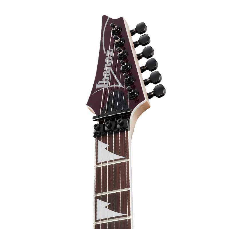 Ibanez RG565R-VK – электрогитара с корпусом из липы. Корпус из липы отличается легкостью и формирует естественный, сбалансированный тон, хорошо раскрывается как в чистом звуке, так и при перегрузке. Гриф Super Wizard изготовлен из пяти частей клена и ореха. Такая конструкция сочетает прочность и стойкость с удобным тонким профилем, что особенно важно при игре быстрых пассажей. Накладка из палисандра добавляет звук плотности и подчеркивает средние частоты, сохраняя четкую артикуляцию.