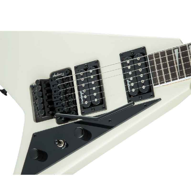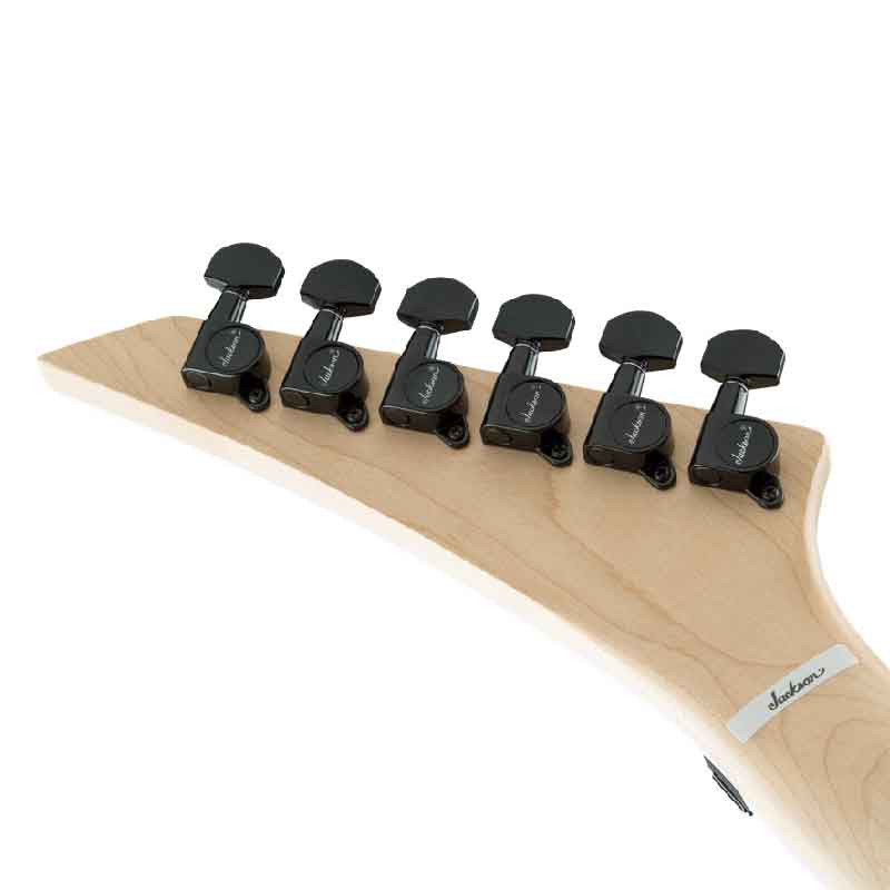 Гитара оснащена двумя хамбакерами Jackson с керамическими магнитами и высоким выходом, создающими насыщенное и агрессивное звучание, идеально подходящее для хард-рока и металла. Каждый звукосниматель имеет отдельный регулятор громкости и тембра, а трехпозиционный переключатель позволяет быстро изменять конфигурацию звучания. Бридж Floyd Rose® с двойной фиксацией под брендом Jackson обеспечивает стабильный строй и высокий сустейн, что позволяет уверенно использовать техники дайв-бомб и агрессивные соло. Герметичные литые колья гарантируют точную настройку и долговечность инструмента.