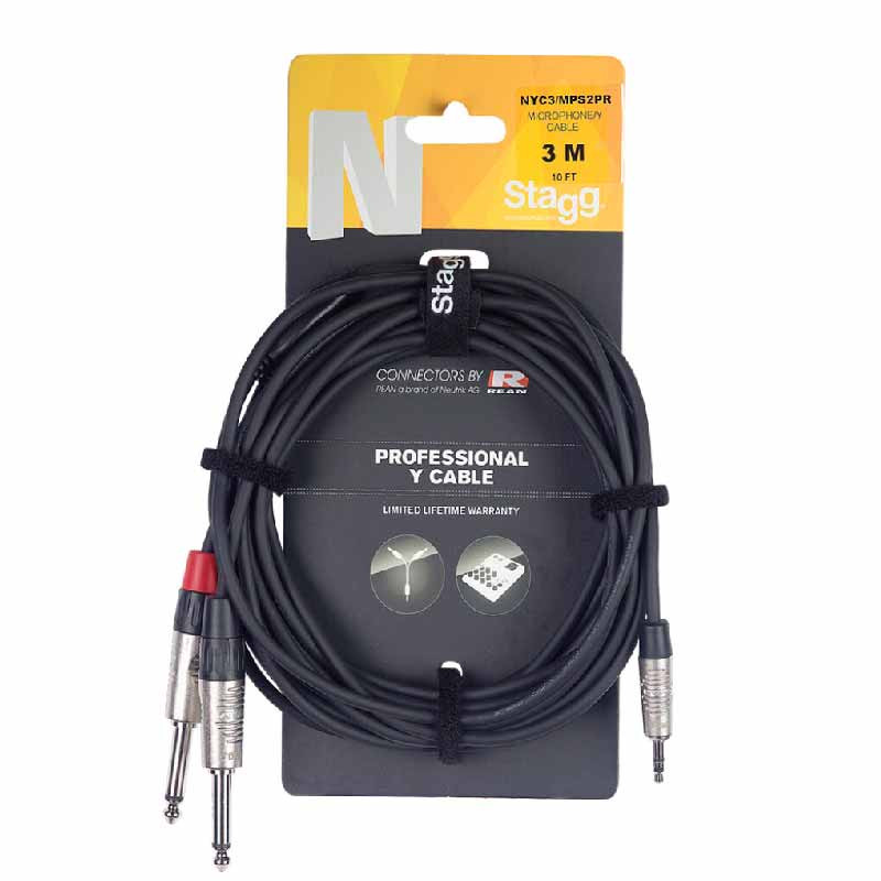 Stagg NYC3/MPS2PR — надежный 3м, коммутационный кабель Y-кабель серии N, предназначенный для ежедневного использования в студии и на сцене. Оснащенный прочными разъемами REAN, он гарантирует стабильное соединение и длительный срок службы. Мини-джек стерео и два моно джека обеспечивают универсальное подключение к различному оборудованию – от микшеров и усилителей для наушников до музыкальных инструментов и аудиоустройств. Черная оплетка кабеля защищает провод от механических повреждений.