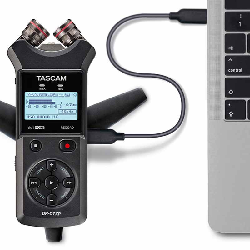 Tascam DR-07XP - это не только мощный рекордер, но и ультракомпактный аудиоинтерфейс USB-C с двумя входами и выходами, которые очень просто подключаются к компьютерам, а также к совместимым DAW на ПК, Mac, iPhone или iPad и способен обеспечить высокое качество аудиозаписи.