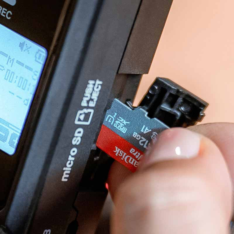 Портативный 2-канальный аудиорекордер со слотом для карт памяти формата microSDXC.