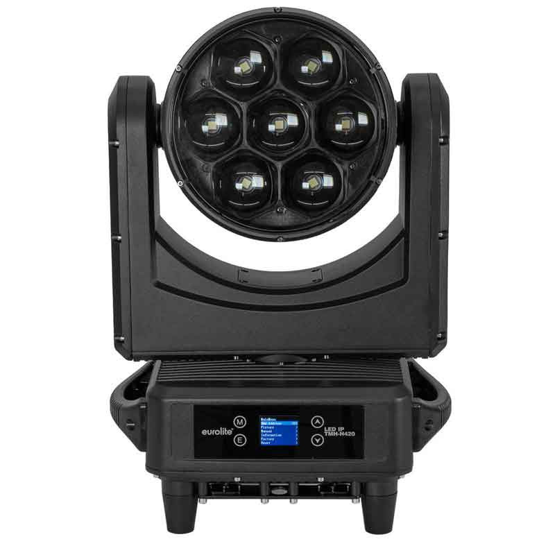 Eurolite LED IP TMH-H420 Beam/Wash/Flower Effect – погодоустойчивая подвижная головка с яркими светодиодами RGBW 7 x 60 Вт, вращающимся эффектом «цветок» и пиксельным управлением.