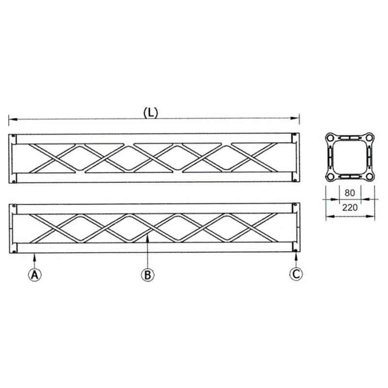 Soundking DKB2204-400 – алюминиевая ферма, секция 4000 мм. Форма квадролайта, со стороной 220 мм.