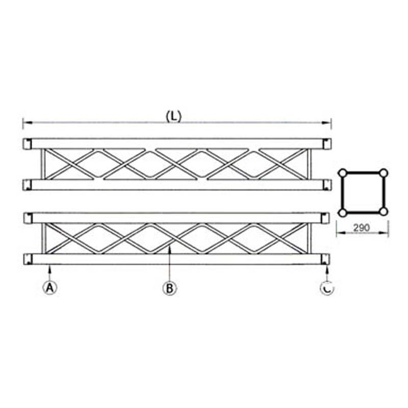 Soundking DKB2904-200 – алюминиевая ферма, секция 3500 мм. Форма квадролайта, со стороной 290 мм.