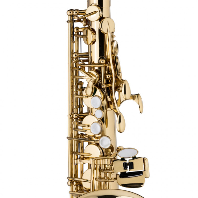STAGG P WS-AS215S – это альт-саксофон в строю Mi-бемоль, созданный для тех, кто стремится соединить надежность и выразительное звучание. Его корпус, раструб и шейка изготовлены из латуни и покрыты прозрачным лаком, что подчеркивает теплый золотистый оттенок инструмента и защищает от износа.