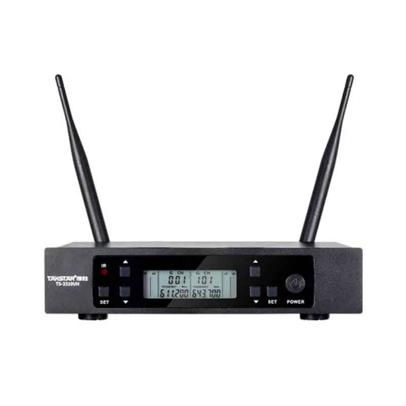 Takstar TS-3310UH – радиосистема UHF на 2 микрофона с возможностью выбора среди нескольких частотных каналов, имеющая лучшую устойчивость к помехам и покрытию зон.