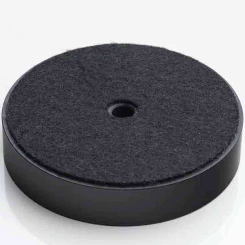 Tone Factory Record Puck – прижимной диск для виниловых пластинок, изготовленный с высокой точностью из алюминия и анодированный в черный цвет. Он предназначен для установки на большинство проигрывателей, высота шпинделя которых над опорным диском не превышает 10,5 мм. Прижим улучшает демпфирование пластинки, установленной на проигрывателе, и звучание становится более подробным и прозрачным.