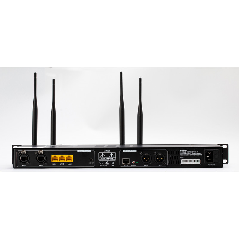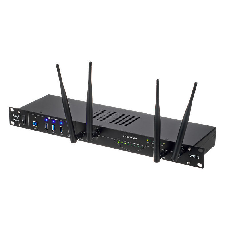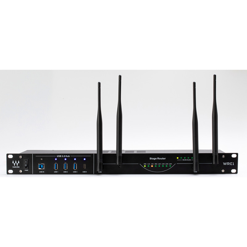 WAVES WRC-1 - професійний бездротовий гігабітний мережевий маршрутизатор. Металевий корпус для установки в 19'" стійку (1U) WiFi роутер, призначений для роботи з професійним аудіоприладнання і управління сценічним обладнанням. Пристрій адаптований для монтажу в стійці, має 5 гігабітних портів, двобічний Wi-Fi і оснащений програвачем DLNA з збалансованими входами XLR.