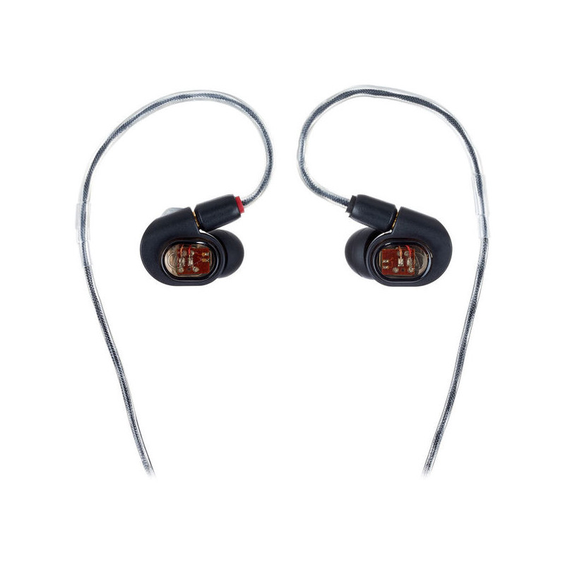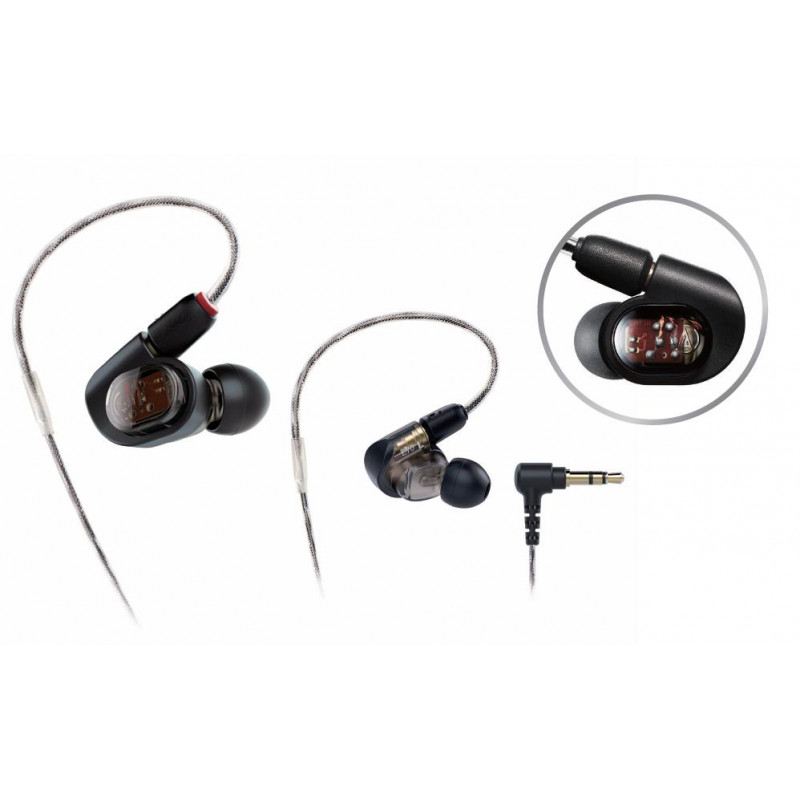 Навушники ATH-E70 оснащені спеціально розробленим корпусом, призначеним для поліпшення ізоляції від зовнішнього шуму. Максимальна ізоляція та комфорт підсилюються чотиривимірними силіконовими вкладишами (XS/S/M/L), які входять до комплекту. Навушники також оснащені знімним 1,6-м кабелем, м'яким корпусом для зберігання та транспортування, а також 1/4-"роз'ємом (6,3 мм) адаптером.