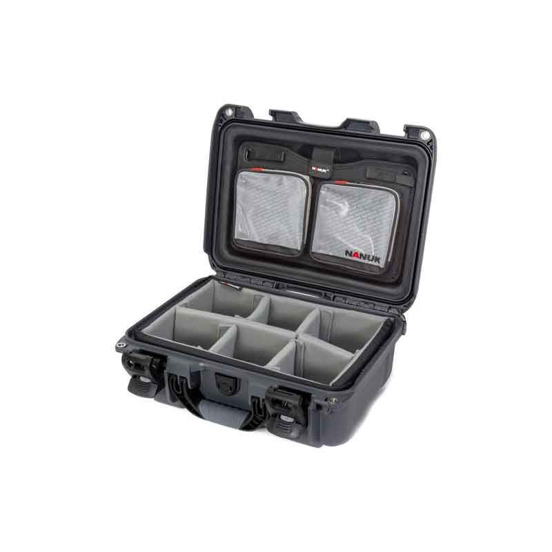 Nanuk 915 (Graphite) PRO Photo Kit (PD+LIDO) - захисний кейс для фототехніки з м'яким органайзером Padded Divider та органайзером LIDO у кришці. Ступінь захисту IP67. Made in Canada. Підійде для фотографів, відеооператорів, любителів активного відпочинку, спортсменів, співробітники правоохоронних органів, військових, мисливців і любителів постріляти, щоб захистити своє найцінніше спорядження. Профіль захисного кейса Nanuk 915 ідеально підходить для зберігання пістолетів, невеликих дронів, електроніки і компонентів, а також компактних інструментів і оборудованія. Кейс буде надійно захищати від механічних пошкоджень, вологи і екстремальної температури.