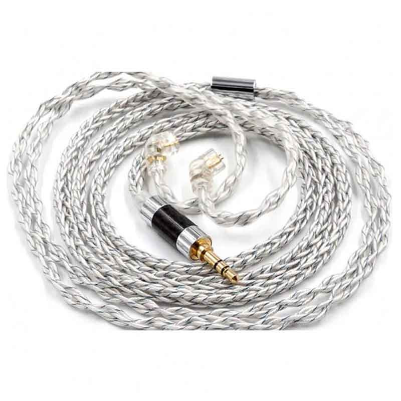 KZ Silver & Blue Cable 2pin (C) 90-8 виготовлений з посрібленої міді високого ступеня очищення, "одягненої" в м'яку силіконову ізоляцію. Саме обплетення дещо відрізняється від застосовуваного в ранніх дротах від KZ. І головною відмінністю є блакитні "нитки", інтегровані в загальну масив. Варто також відзначити наявність металевого подільника, сформованих завушини і великого 3.5-мм аудіоджеку, корпус якого виконаний теж з металу. Природно, не обійшлося і без обмежувача перегину, без якого важко собі уявити сучасний 3.5-мм штекер.