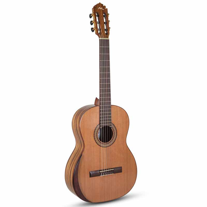 Manuel Rodriguez Academia A40-C 4/4 - класична гітара 4/4. Верхня дека виготовлена з масиву канадського кедра (Canadian Cedar), ламіноване зебрано (Zebrano) використано для задньої деки та обичайок. Гриф з червоного дерева (Mahogany) з накладкою і струнотримачем з овангкола. З'єднання грифа з корпусом здійснено за допомогою традиційної іспанської п'яти (spanish heel). Верхній та нижній поріжки виготовлені з натуральної кістки, що забезпечує довговічність і найкращу передачу резонування.