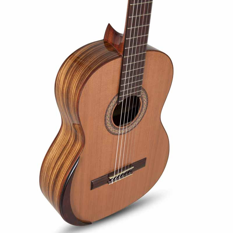 Academia – найдоступніша серія класичних гітар Manuel Rodríguez зі справжньою іспанською п'ятою, королівський клас у гітарному світі. Завдяки цьому особливому методу виготовлення, гриф з одного шматка деревини продовжується всередину корпусу і безпосередньо з'єднаний з боковинами, задньою та верхньою деками. Це забезпечує не тільки надзвичайну стабільність, але й оптимальну передачу вібрацій, швидший відгук і довший сустейн. Іспанська п'ята – серце іспанської класичної гітари, детальніше про цей метод виготовлення можна прочитати тут.