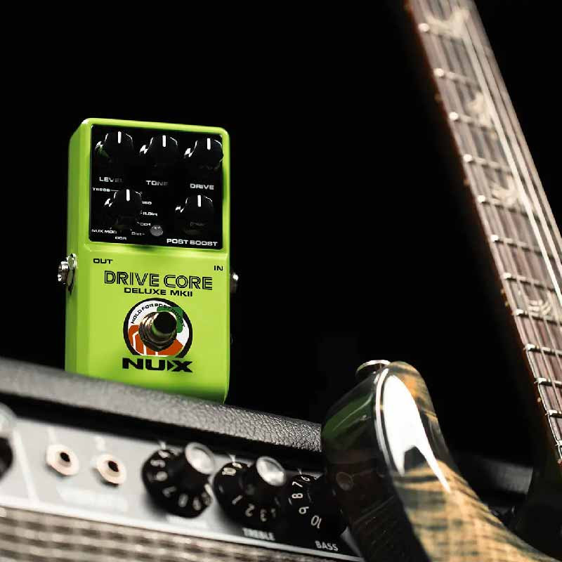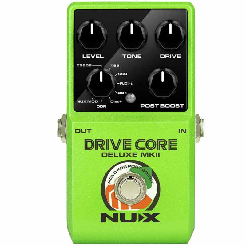 NUX Drive Core Deluxe MKII - гітарна педаль овердрайву, відома також як Wasabi Drive, що поєднує в собі вісім легендарних типів овердрайву в одному компактному корпусі. Від теплих блюзових відтінків Texas до яскравого Nashville Overdrive — кожен стиль звучить автентично завдяки 100% аналоговому ланцюгу та високоякісним реле, які гарантують природну динаміку й чистоту сигналу.