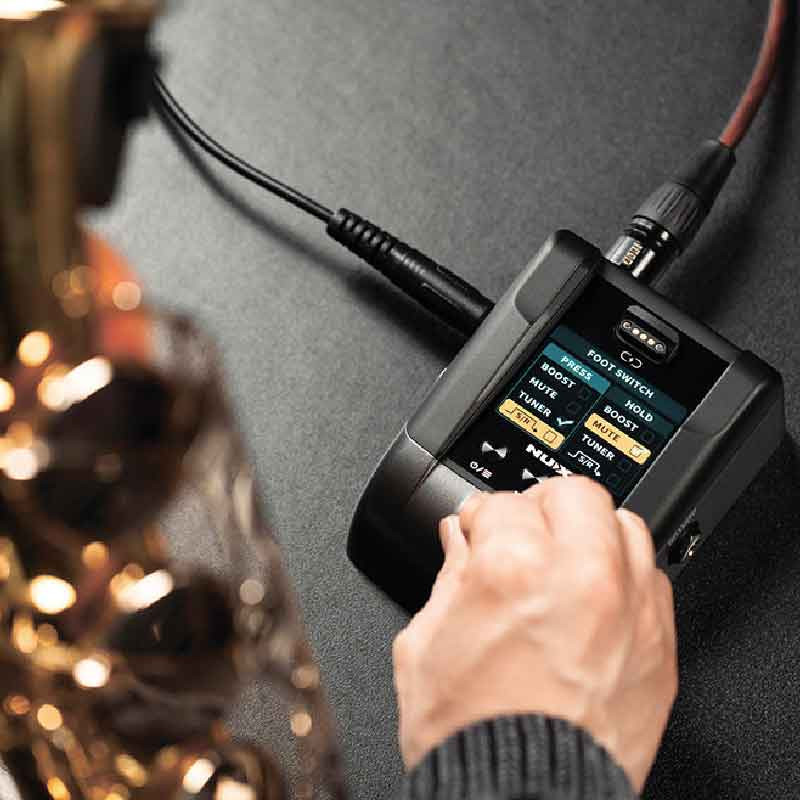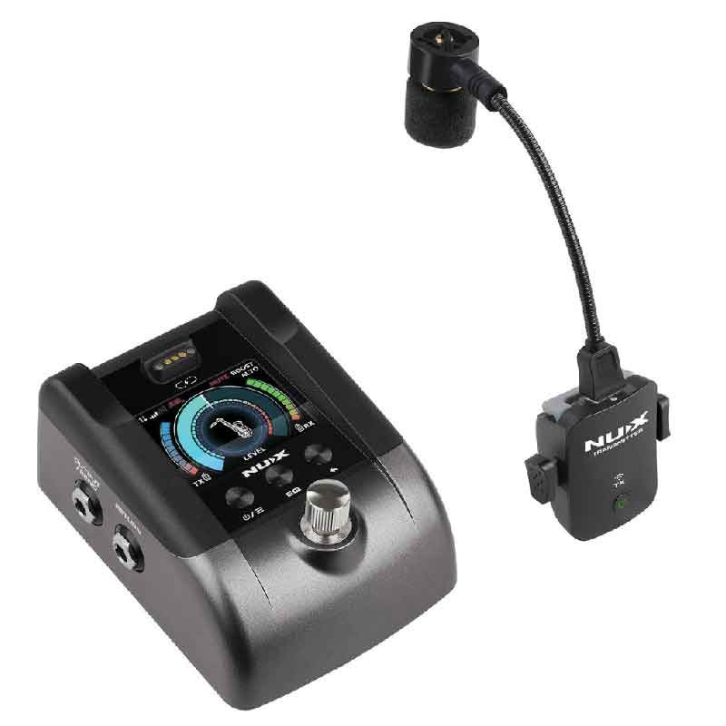 NUX B-6 PRO — це не лише бездротовий передавач, а справжній інструмент для професійного виконавця. Він має EQ-пресети для різних духових, вбудований тюнер, booster і send/return функції, що керуються через footswitch. Крім того, ви можете підключити систему до смартфона через USB-C для цифрового запису.
