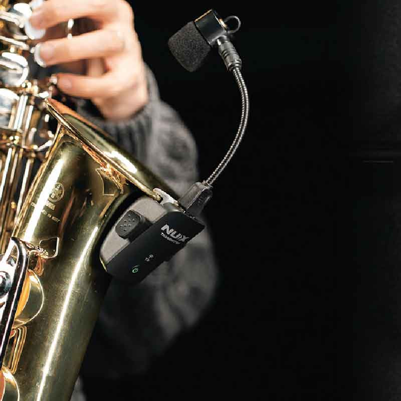 NUX B-6 PRO Wireless System for Wind Instruments - радіомікрофон для духових інструментів, як то: саксофони, труби та інші мідні/дерев'яні духові інструменти. NUX B-6 PRO відкриває нову еру свободи для духових музикантів. Забудьте про обмеження кабелів — тепер ваш звук завжди чистий, точний і виразний, незалежно від того, чи ви граєте на великій сцені, чи рухаєтесь серед публіки.
