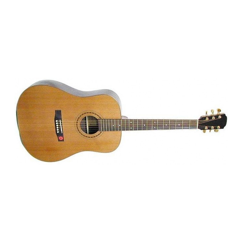 Гітара вестерн-дредноут. Корпус з індійського палісандра, верх – масив кедра. Гриф із червоного дерева, накладка з палісандра, голівка венге. Бридж із палісандра. Кант з червоного дерева. Ширина грифа у верхнього порожка 43 мм. Гітара знижена в ціні через пошкодження.