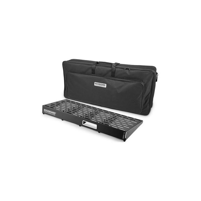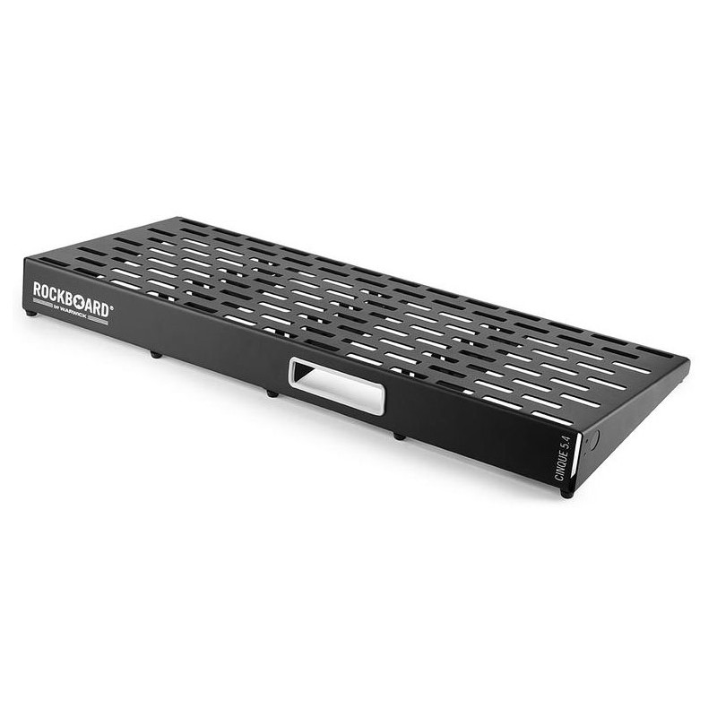 Оригінальний легкий, жорсткий і міцний дизайн заснований на одному вигнутому листі холодного прокатного алюмінію і доповнений П-образними вертикальними скобами для додаткової стійкості. Інноваційний прорізний дизайн ділянки - це не тільки елегантність і стило, але і дозволяє приховати комутаційні кабелі і розмістити від 20 до 30 педалей. А для зручності зберігання і транспортування RockBoard CIN'UE 5.3 оснащений фірмовою сумкою з плечовим ремінцем.