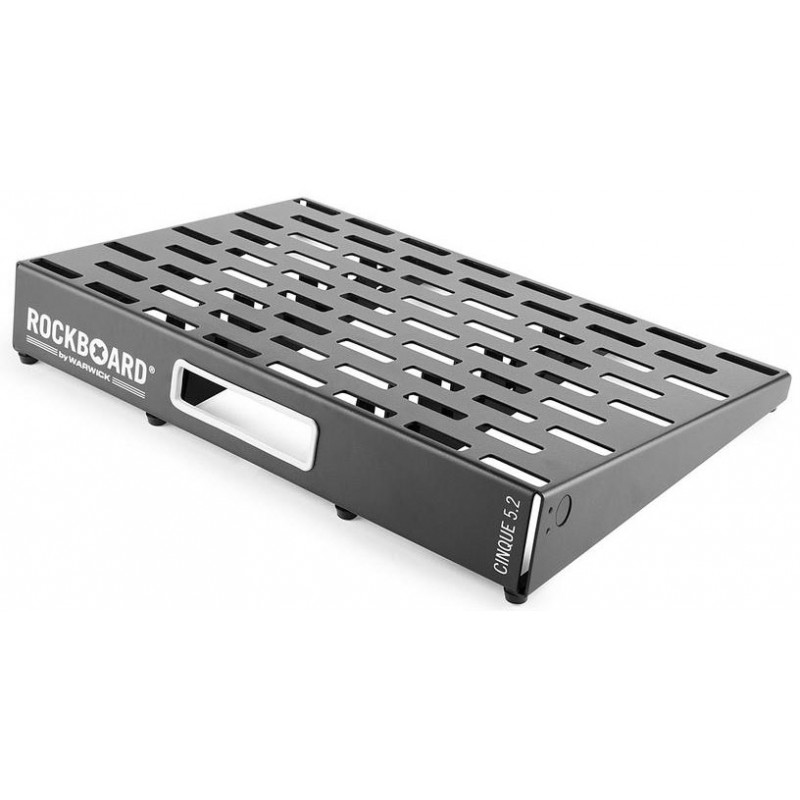 Оригінальний легкий, жорсткий і міцний дизайн заснований на одному вигнутому листі холодного прокатного алюмінію і доповнений П-образними вертикальними скобами для додаткової стійкості. Інноваційний дизайн сайту не тільки елегантний і лаконічний, але і дозволяє приховати комутаційні кабелі і розмістити від 9 до 15 педалей. А для зручності зберігання і транспортування RockBoard CIN'UE 5.2 оснащений фірмовою сумкою з плечовим ремінцем.
