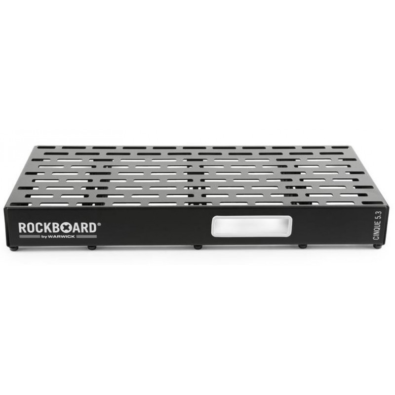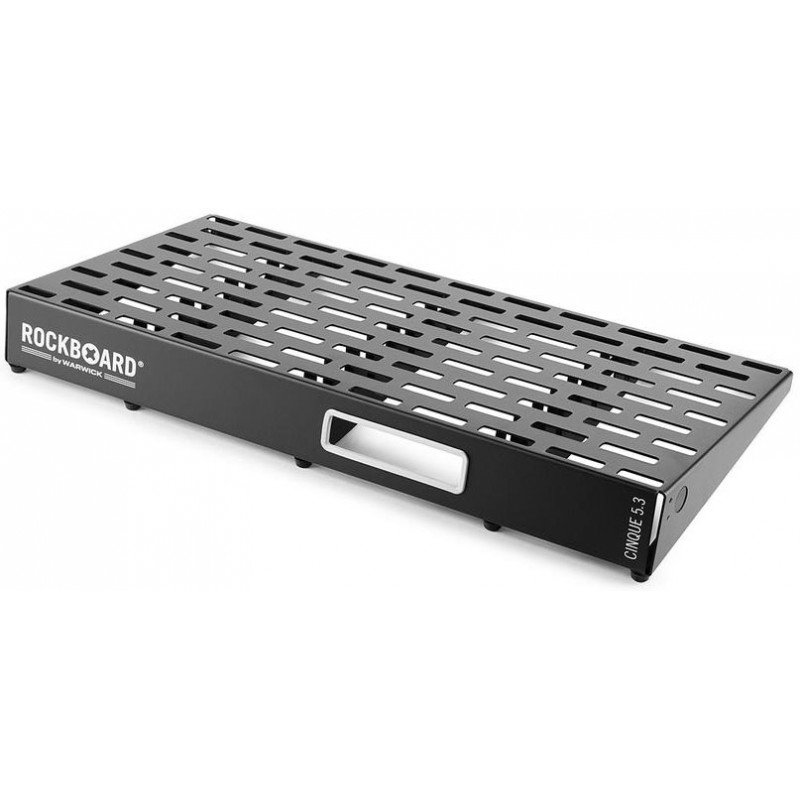Оригінальний легкий, жорсткий і міцний дизайн заснований на одному вигнутому листі холодного прокатного алюмінію і доповнений П-образними вертикальними скобами для додаткової стійкості. Інноваційний дизайн сайту не тільки елегантний і лаконічний, але і дозволяє приховати комутаційні кабелі і розмістити від 15 до 25 педалей. А для зручності зберігання і транспортування RockBoard CIN'UE 5.3 оснащений фірмовою сумкою з плечовим ремінцем.