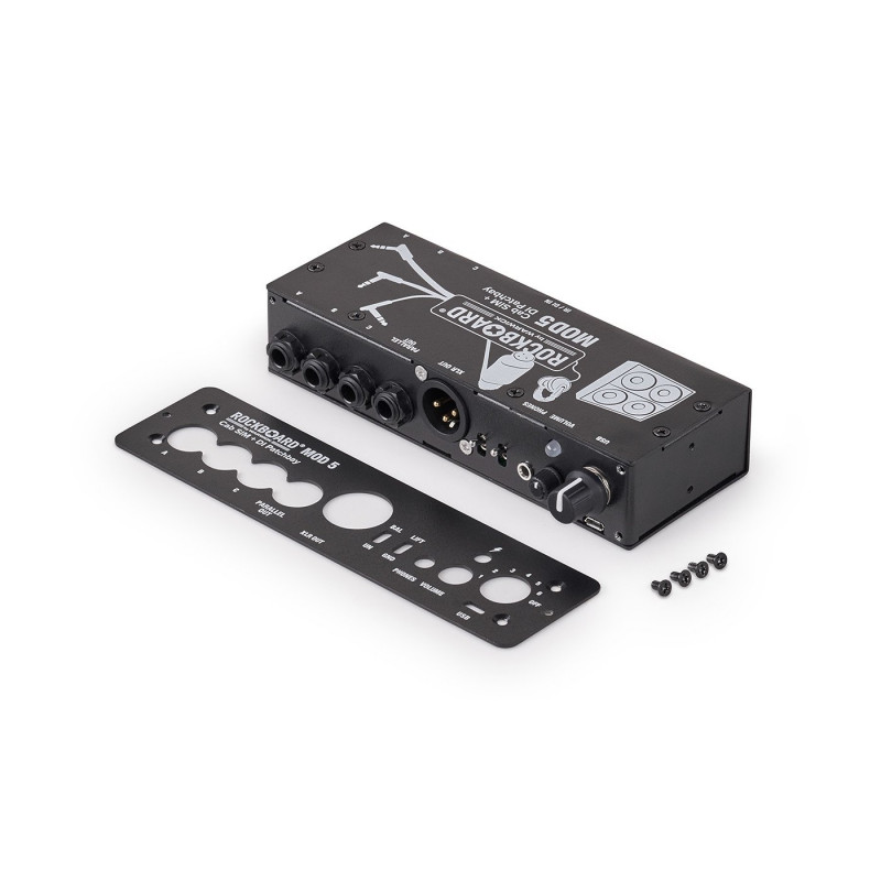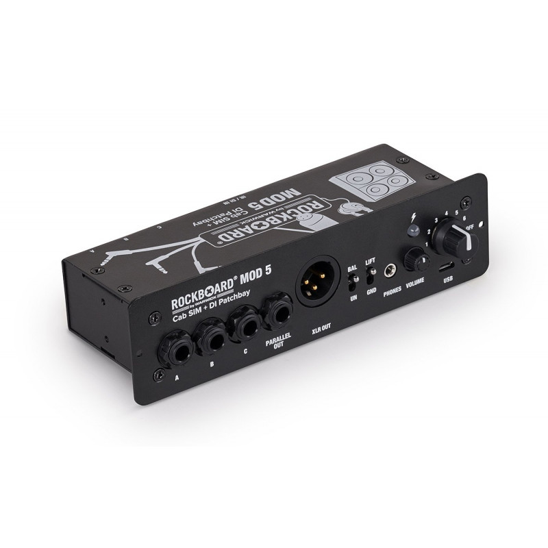 ROCKBOARD RBO B MOD 5 - Cab SIM - DI Patchbay - це настроюється імпульсний динамік і активний DI бокс, виконаний в зручному і практичному форм-факторі, що дозволяє легко проїхати всю педаль. Неважливо, чи використовуєте ви педаль RockBoard® або що завгодно - MOD 5 дасть вам абсолютно нові можливості! Вбудований симулятор шафи для гітари і дібокси дозволяють підключатися безпосередньо до лінії, даючи вам можливість зберегти свій фірмовий звук навіть при відсутності зворотної лінії.