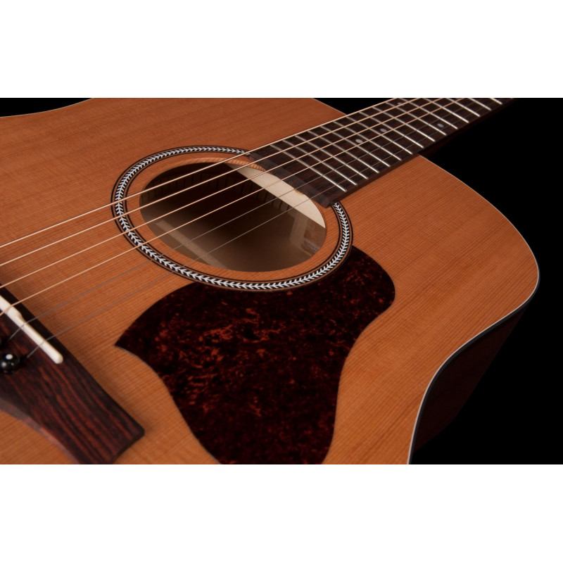 SEAGULL 046386 - S6 ORIGINAL - акустична гітара, задня палуба і риж: дика вишня, матеріал верхньої палуби: обраний цілий кедр, форма тіла: Дредноут, Стерв'ятник матеріал: клен, підкладка і міст: пащу, ширина хліба: 1,8" (45,72 мм), мензура: 25,5" (647,7 мм), лади: 21, глибина тіла: 124,46 мм, довжина тіла: 19,8" (502,92 мм), ширина дна: 403,1 мм, ширина талії: 267,72 мм , верхня ширина: 289.05 мм, покриття: Напівгляцева полірована обробка.