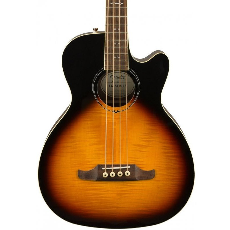 FENDER FA-450CE LR SUNBURST - акустична бас-гітара, верхня палуба - вогненний клен, бічні і задня колоди - червоне дерево, гриф - лорел, звуковий гід Fishman, колір - санберст.