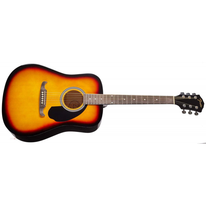 FENDER FA-125 WN DREADNOUGHT ACOUSTIC SUNBURST - акустична гітара, 6 струнних, форма - дредноут, верхня палуба - ялина, бічна і нижня - вапно, гриф - вапно, стерв'ятникова підкладка: гайка, колір - санберст.