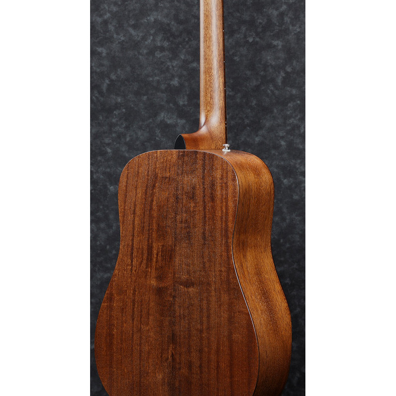 IBANE AW54JR OPN - акустична гітара, праворуч, кількість струн: 6, розмір: зменшений, колір: натуральний, форма колоди: Дредноут Джуніор, особливості колоди: однофокий верх, кількість ладів: 20, Верхня палуба: махагони, нижня палуба: червоне дерево, гриф (з накладенням): махагони з підкладкою овангкола, бічні панелі (обейка): червоне дерево, мензура: 607 мм, міст (тримач стійки/струни): овангкол, механіка (колеса): хром, струни: D'Addario EXP, гарантія: 12 місяців.