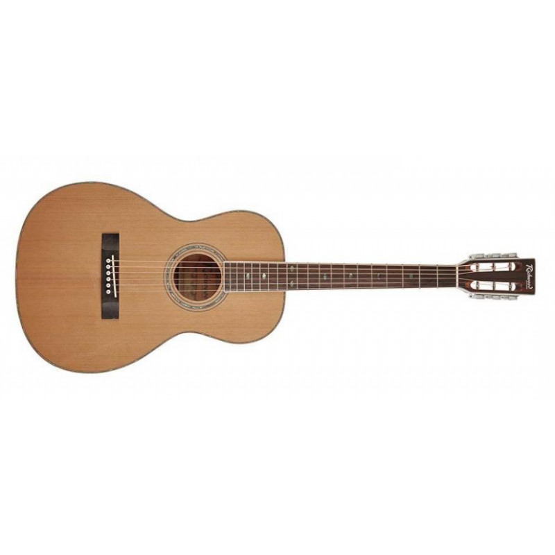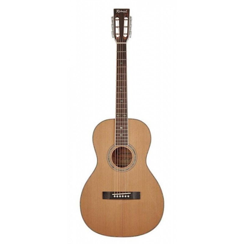 RICHWOOD RV-70-NT BLUES GUITAR - блюзова гітара, мензура: 615 мм, ширина верхньої плавки: 42 мм, нижня ширина: 353 мм, верхня ширина скраму: 242 мм, глибина тіла: 76 мм, струни: Д'Аддаріо. Блюзова гітара розміром з салон, що нагадує гітари 1930-х років.
