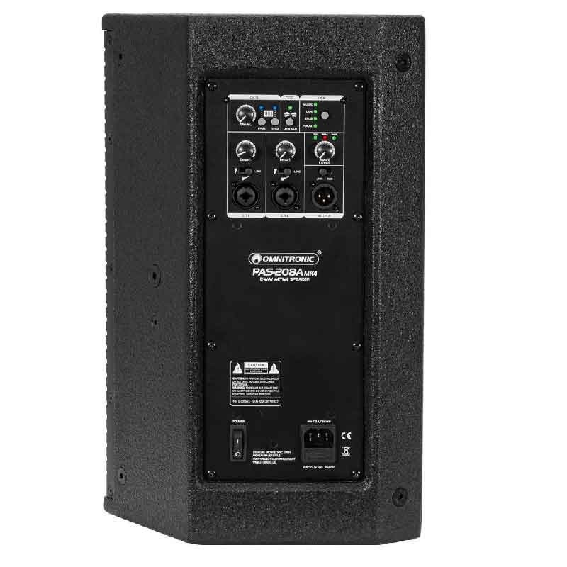 Omnitronic PAS-208A MK4 - активна акустична система з 8-дюймовим вуфером, 1-дюймовим драйвером, 200 Вт RMS LF, 40 Вт RMS HF.