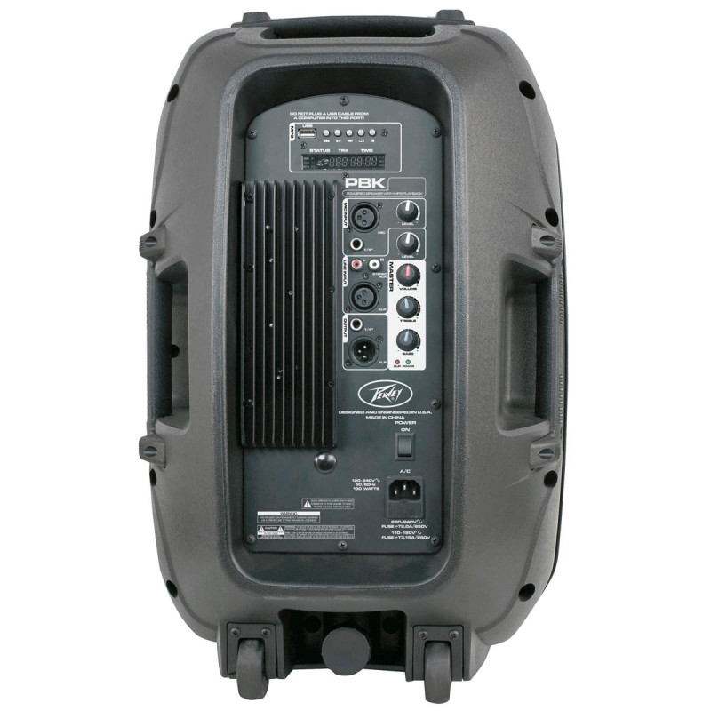 PEAVEY PBK15PB - активна 2-смугова акустична система (15" HF q 1,4" ВЧ), вбудований підсилювач 450 Вт (пік), 2-смуговий майстер еквалайзер, Лінійний вхід: XLR 2 x RCA, вхід мікрофона: роз'єм XLR q1/4", лінійний вихід: роз'єм XLR q1/4", USB-порт і MP3-медіа плеєр, вбудоване скло і ручки для транспортування, виробництво: Китай, гарантія: 12 місяців.