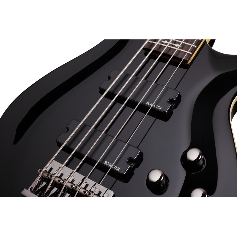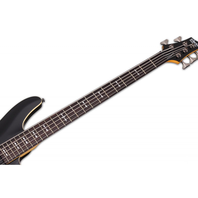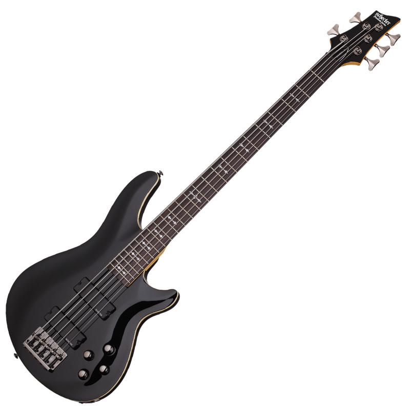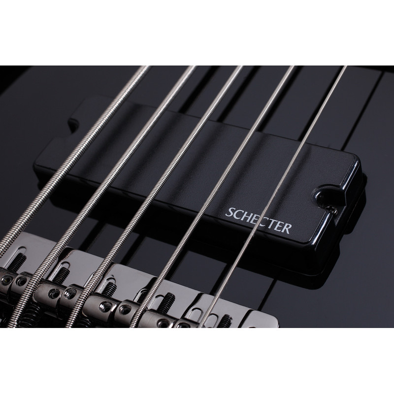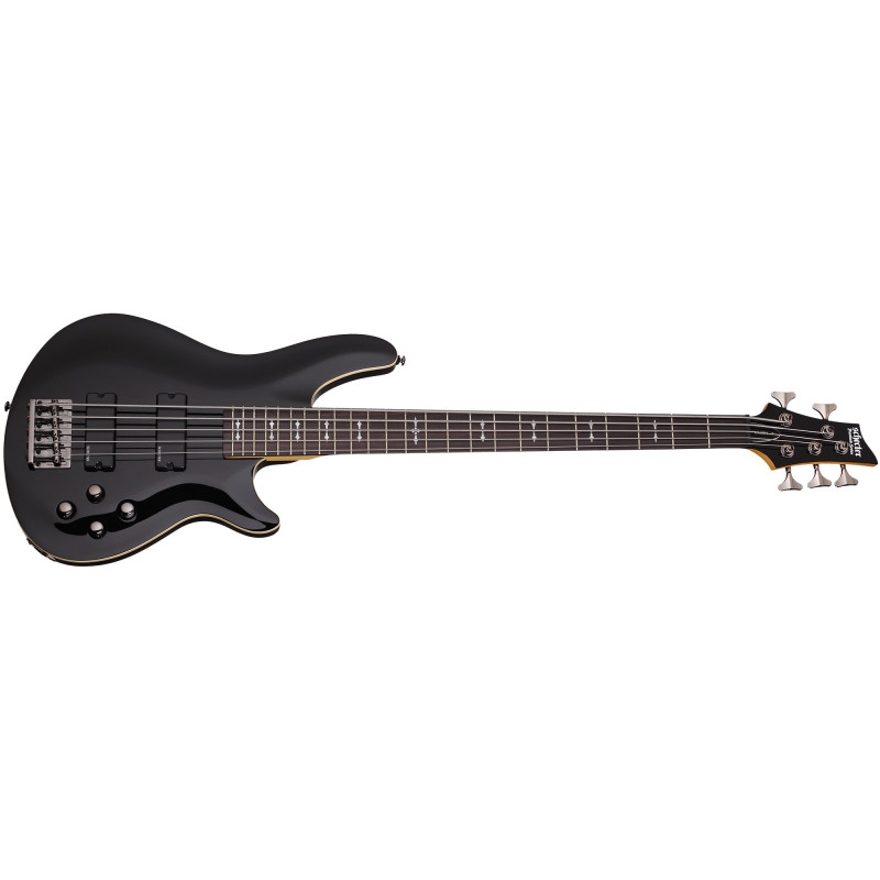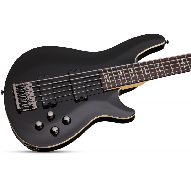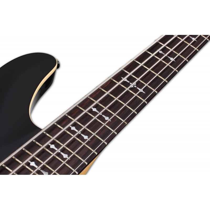 SCHECTER OMEN-5 BLK - бас-гітара, 5 стерв'ятникових кріпленнях: на 6 болтах, матеріал корпусу: вільха, оцтовка корпусу: «слонова кістка» 1-шарова, стерв'ятниковий матеріал: клйон, підкладка для шиї: палісандер, лади: перламутрові готичні напівхретики, мензура: 35" (889 мм), фрети: 24 X-Jumbo, радіус грифів: 16" (406 мм), форма грифу: Тонкий 'C', розміри лад: 1-й лад -787" (20 мм) / 12-й лад - .866" (22 мм), поршні: Graph Tech XL Black Tusq, ширина хліба: 1,771" (45 мм), якір: подвійний, Регульований, з 4 мм якірним болтом, міст: Diamond Bass, звукорежисер мосту: Schecter Diamond Bass, звукорежисер NEC: Schecter Diamond Bass, контролери: майстер гучності / майстер, змішування / активний 2-смуговий еквалайзер, кольорова фурнітура: чорний хром, колеса: Schecter, колір: чорний блискучий (BLK).