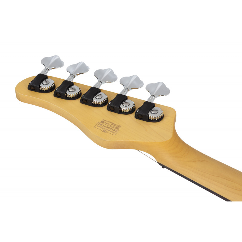 SCHECTER CV-5 GNAT - бас-гітара, стерв'ятниковий монтаж: на 6 болтах, матеріал корпусу: зола, стерв'ятниковий матеріал: Клен укріплений прутами з вуглецевого волокна, підкладка стерв'ятника: палісандер, мітки лади: точки зміщені вгору, мензура: 889 мм, лади: 22 Narrow X-Jumbo, Радіус грифів: 10" (254 мм), форма грифу: Тонкий 'C', розміри лад: 1-й лад - .787" (20mm)/905" (23 мм), поршні: Graph Tech XL Ivory Tusq, ширина хліба: 1,771" (45 мм), якір: подвійний, регульований, з 4 мм якірним болтом.