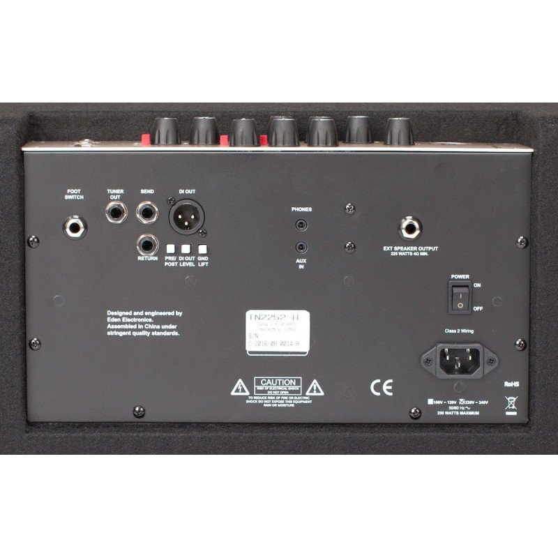 EDEN TN2252 - транзисторний комбо підсилювач для бас-гітари, потужність 2 х10, 225 Вт, петля ефектів: послідовні, вбудовані ефекти: компресор, кількість каналів / пресетів: 1