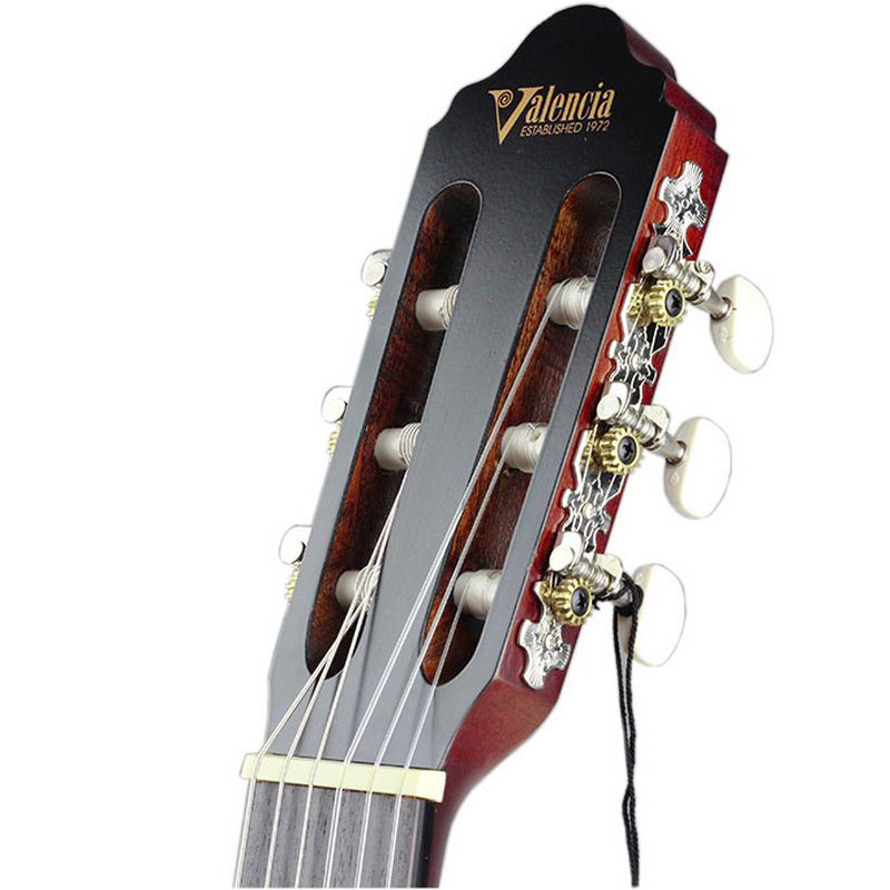 VALENCIA VC201TWR 1/4 - класична гітара, розмір: 1/4, мензура: 502 мм (19 3/4), ширина верхнього прольоту: 40 мм (1 9/16), матеріал верхньої палуби: ялина, задня палуба і кирпатий: пугач: abs - Чорний, гриф: Jabon, шия окантовка: ABS - Чорний, підкладка для шиї і місток: Ебонізований клен, бридж-плавка: пластик, фрети: 19 штук, нікель, уколи: нікель з кремовими капелюхами, покриття: матовий атлас, колір: Прозорий.