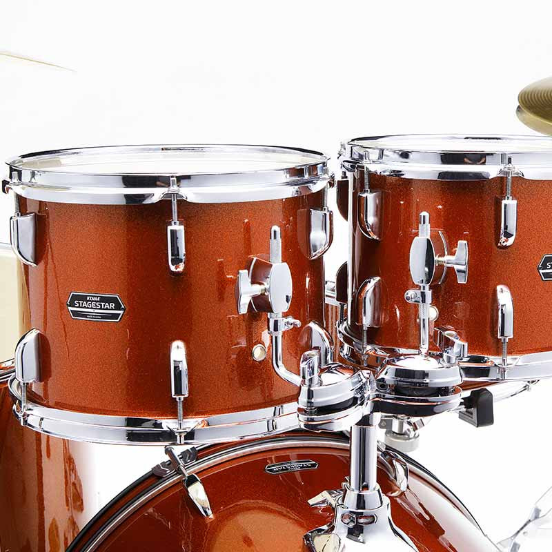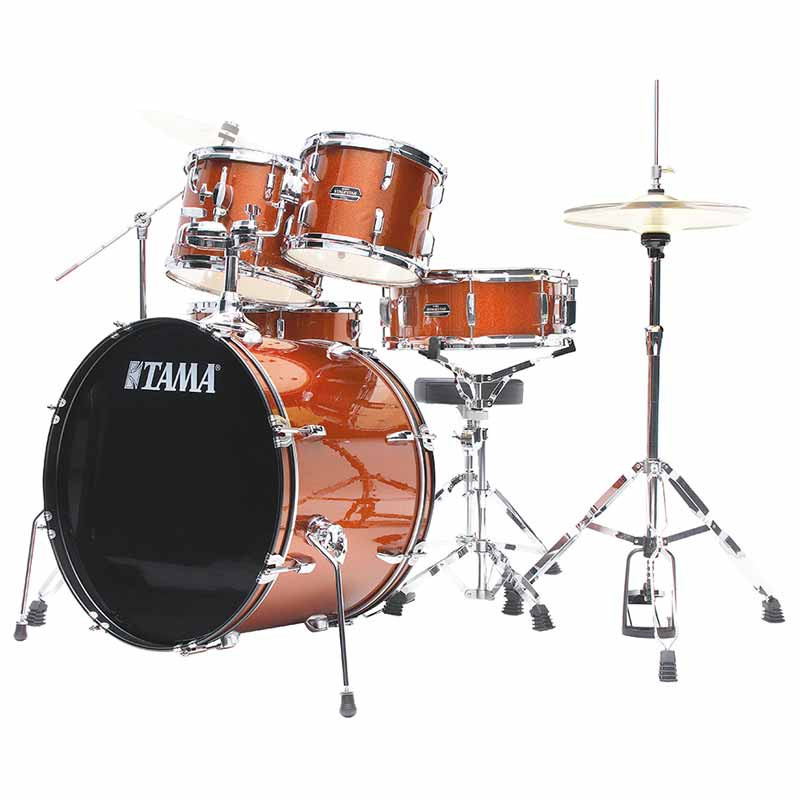 Tama ST52H5-SCP – 5 барабанна установка серії Stagestar, матеріал – 6 шарів тополі (7 мм), конфігурація 22x16", 16x15", 10x8" і 12x9", 14x5.5", в комплекті набір хардвера: стійки, педаль, стілець, подвійний том-холдер, колір – мідний (Scorched Copper Sparkle). З більш ніж 40-річним досвідом, TAMA знає, що саме потрібно барабанщикам. Саме тому TAMA має набір, який вам потрібен незалежно від вашого досвіду гри на барабанах. Цей комплект включає безліч приємних особливостей – Stagestar. У нього входить тримач тома Omni-ball, а також подвійне кріплення для більшої стійкості.